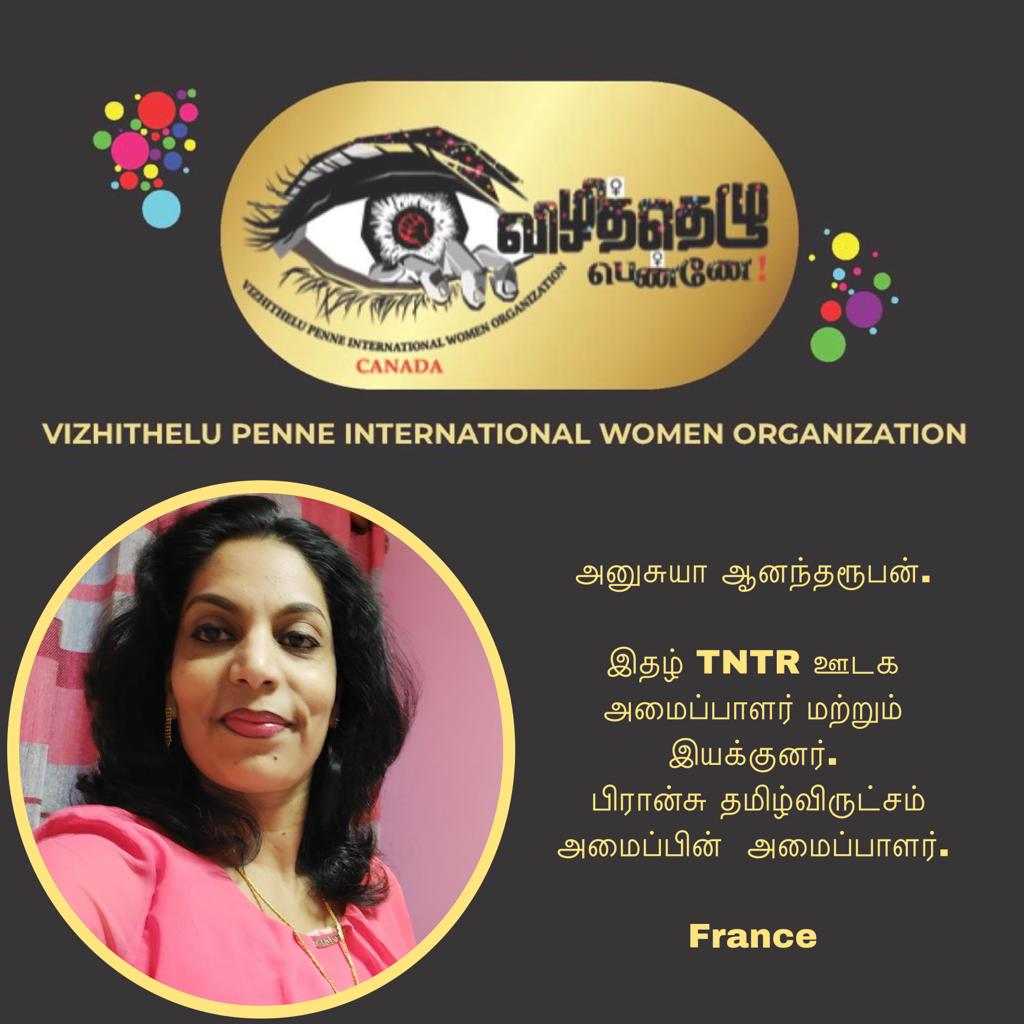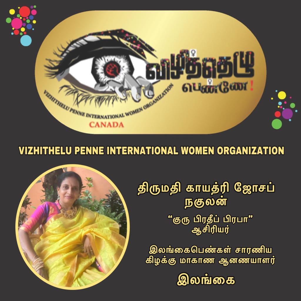 உலகளாவிய ரீதியில் 100 தமிழ் பெண்கள் உறுப்பினராக தெரிவு செய்யப்பட்டு விழித்தெழு பெண்ணே சர்வதேச மகளிர் அமைப்பின் ஊடாக அறிமுகப்படுத்தப்பட்டனர் அதன்படி கனடா, ஐக்கிய ராஜ்யம், ஐக்கிய அமெரிக்கா, இலங்கை, இந்தியா, சிங்கப்பூர், மலேசியா, ஆஸ்திரேலியா, சுவிஸர்லாந்து, நோர்வே, பிரான்ஸ், ஜெர்மனி நோர்வே, ஒல்லாந்து, நியூசிலாந்து, ஐக்கிய அரேபிய அமிரகம் என்று உலகத்தில் தமிழர்கள் வாழ்கின்ற அனைத்து நாட்டில் இருந்து சுமார் 100 தமிழ் பெண் உறுப்பினர்கள், விழித்தெழு பெண்ணே சர்வதேச மகளிர் அமைப்பின் சமூக வலைத்தளம் மூலமாக அறிமுகப்படுத்தப்பட்டனர்